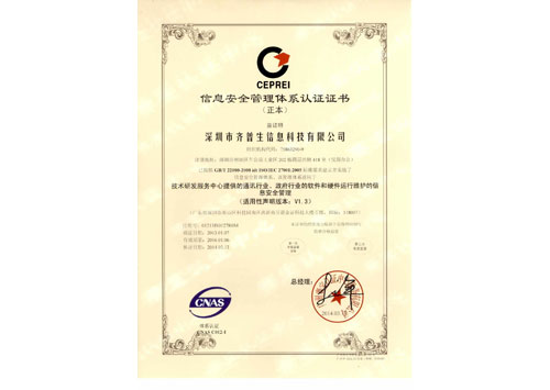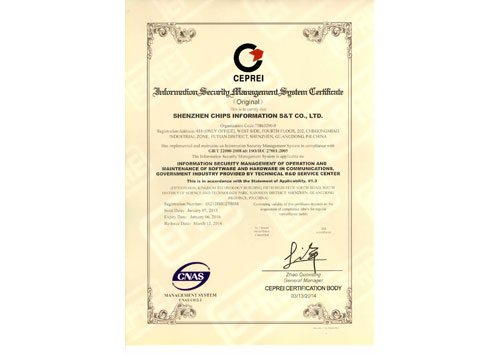 • 信息安全管理體系認(rèn)證證書(正本)