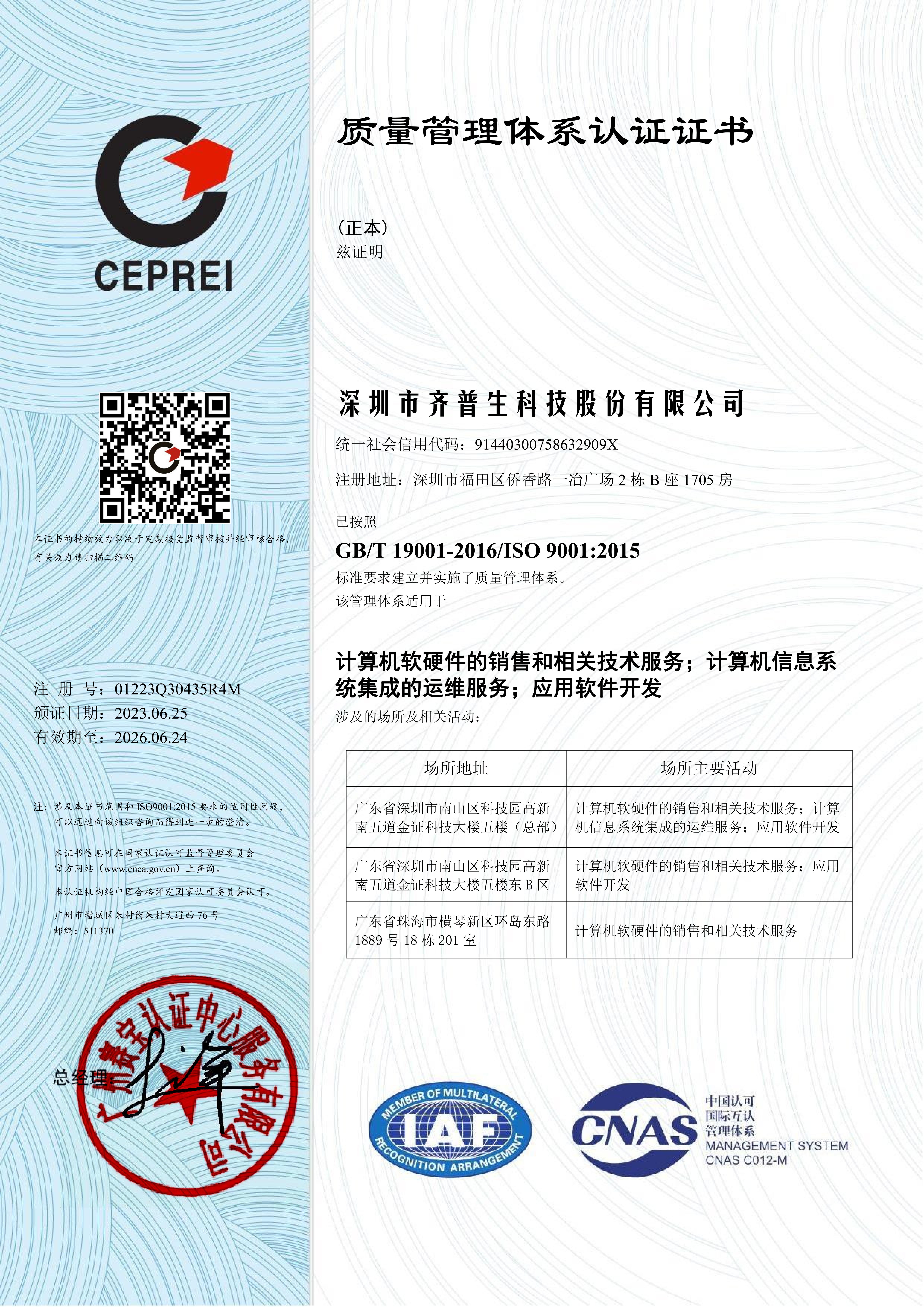 • ISO9001證書(股份)