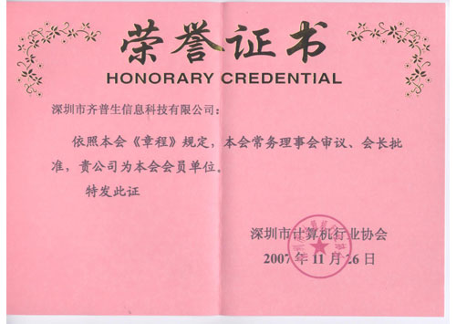 計(jì)算機(jī)行業(yè)協(xié)會(huì)會(huì)員榮譽(yù)(證書(shū))