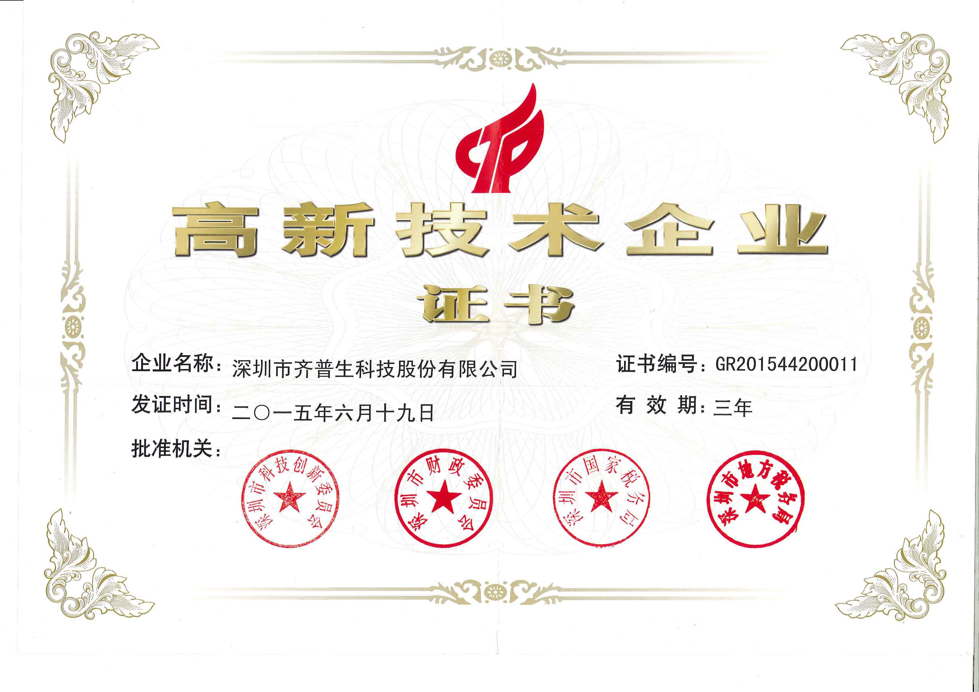 國(guó)家級(jí)高新技術(shù)企業(yè)證書(shū)